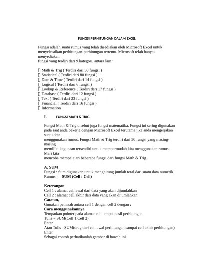 Sum adalah sebuah rumus dasar yang berfungsi untuk menjumlahkan data atau menghitung total data yang terdapat pada sebuah kolom (cell), .